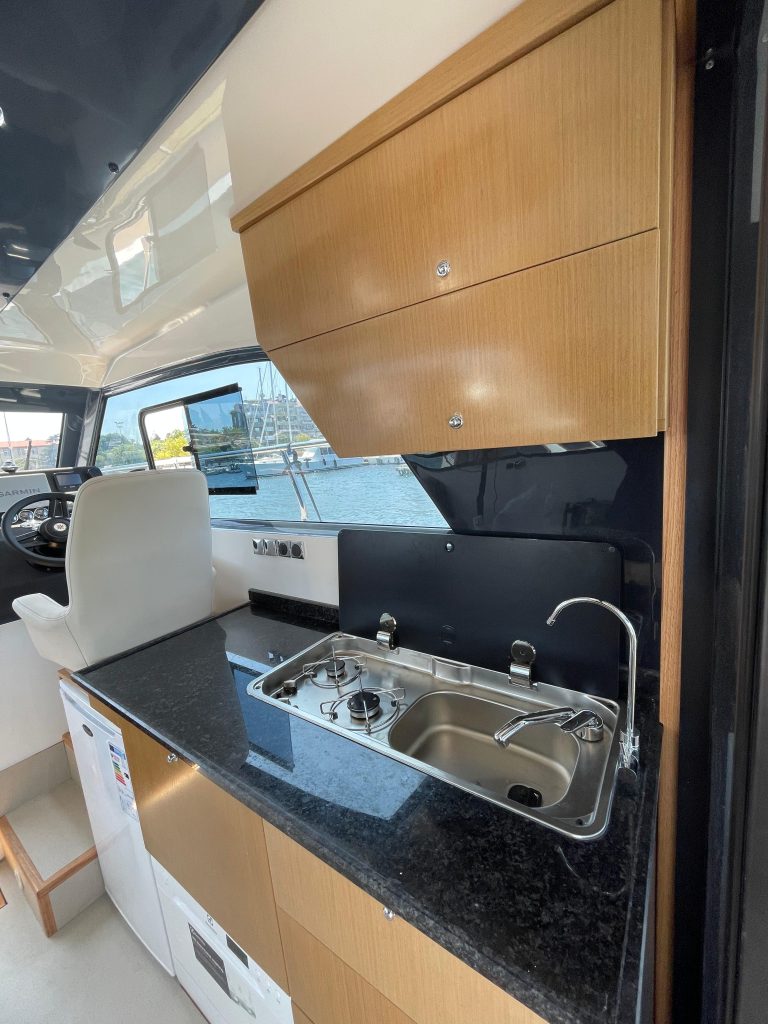 Bu seri üretim motoryat, 10,86 metre uzunluğu, 3.70 metre genişliği ve 6.5 ton ağırlığıyla size eşsiz bir deniz deneyimi sunmak üzere tasarlanmıştır. Şık ve kompakt yapısı, dayanıklı polyester yapı malzemesi ve ferah iç mekanıyla konforlu bir konaklama deneyimi sunar. Uzun seyahatlerinizde su ve yakıt ihtiyaçlarınızı karşılamak için tasarlanan bu tekne, dıştan takma motor seçeneğiyle üstün performans ve manevra kabiliyeti sunar. Sığ sularda rahatça seyahat etmenizi sağlayan 0.65 metre drafta sahiptir. Özgürlüğün, güvenliğin ve konforum tadını çıkarmak isteyen deniz severler için ideal bir seçenektir